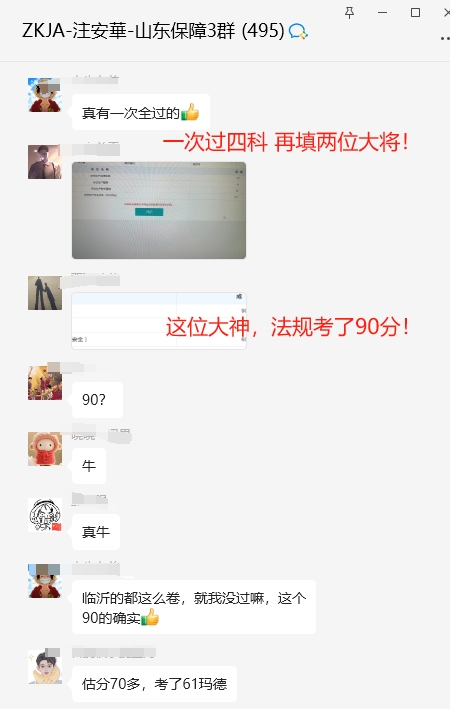 還有同學發出驚嘆:原來真的有一次過的!不止有呢,還有很多個!群里越來越多朋友曬出一次性過四科的成績單~關鍵,有一位大神,法規科目,考了90分!太厲害啦!